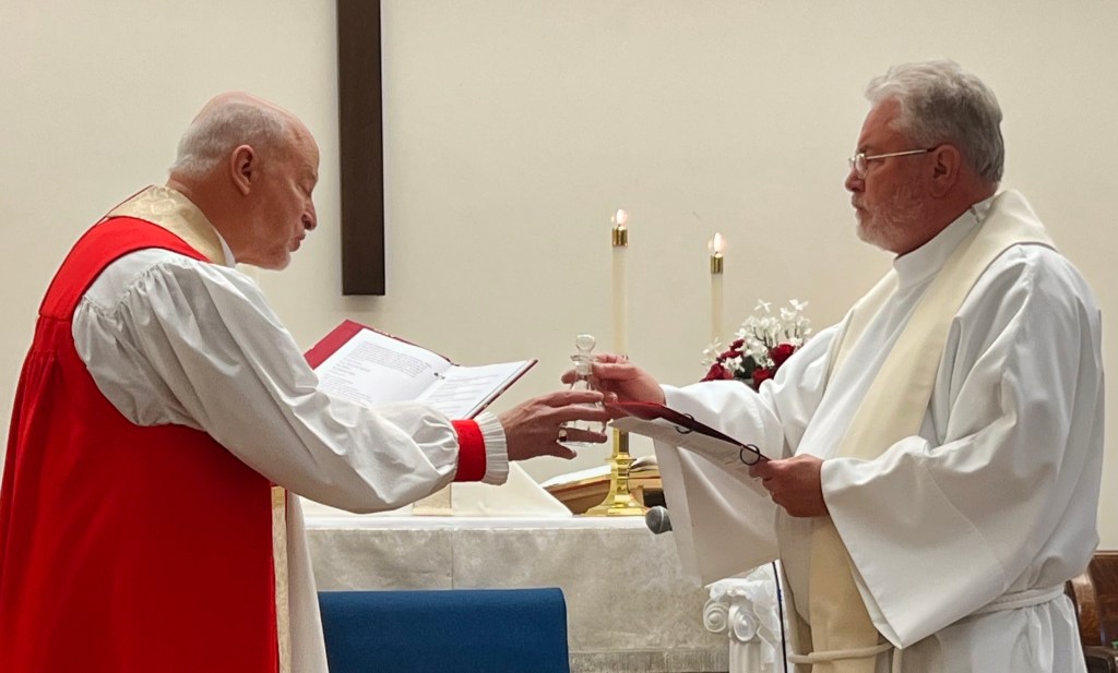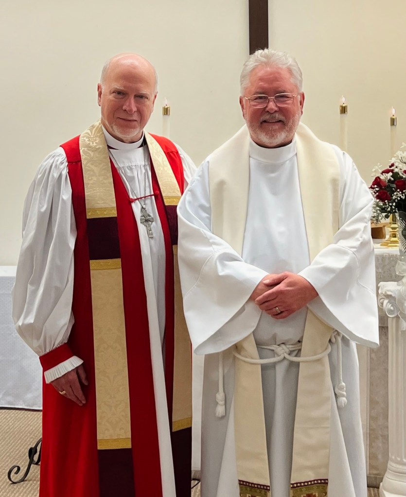 Bishop William Love and his wife Karen traveled from upstate New York to be with us, and the bishop formally installed long-time vicar Stan Price as Rector of CCA. This makes Fr. Stan the official lead minister, as opposed to the “interim” capacity of a vicar who comes and goes at the discretion of the bishop (serving “vicariously”, hence vicar).